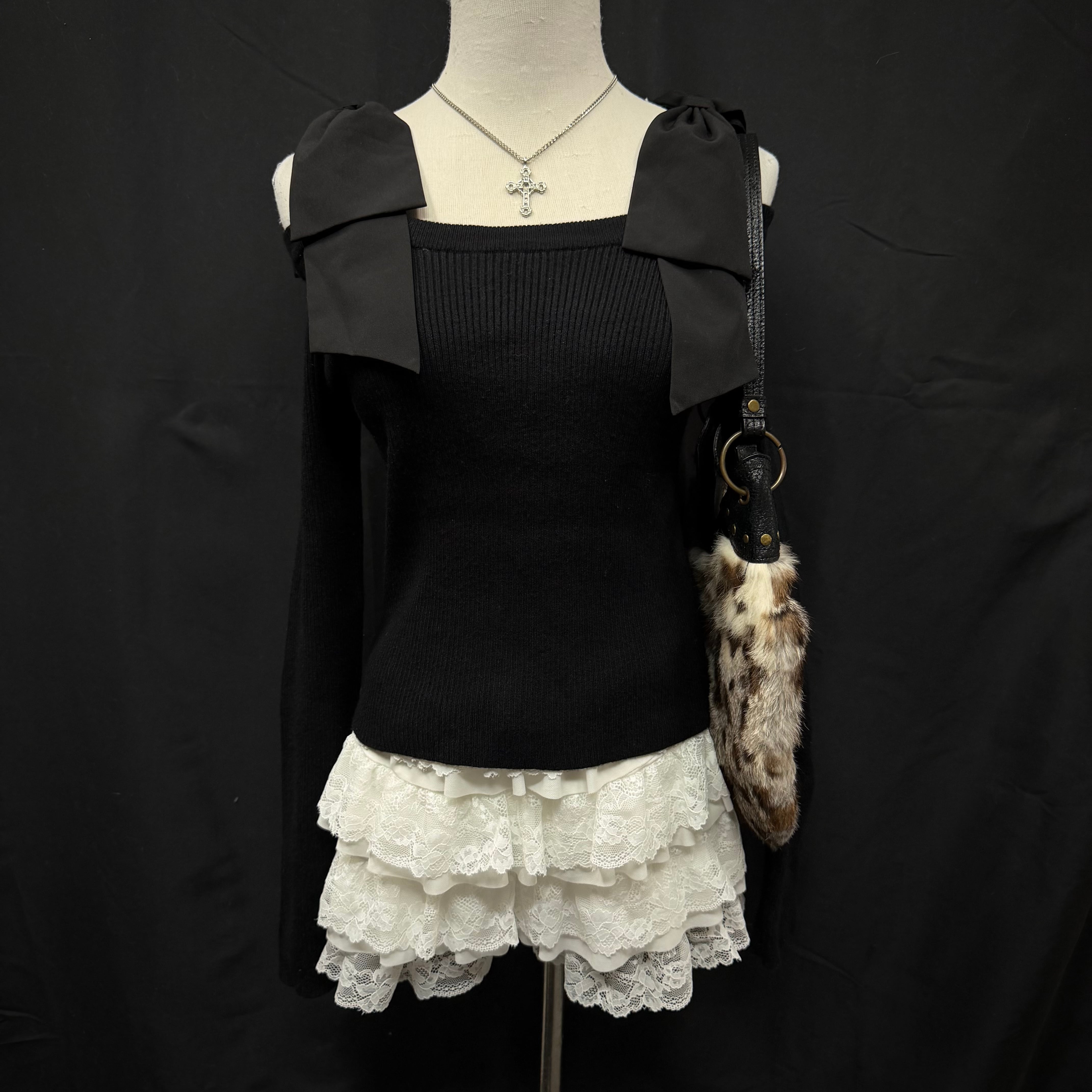 ribon off shoulder knit